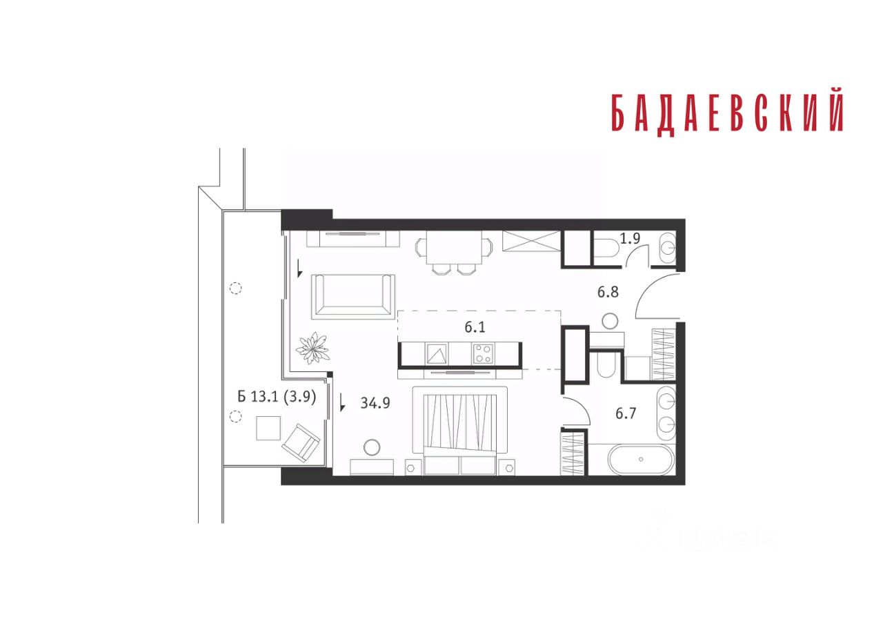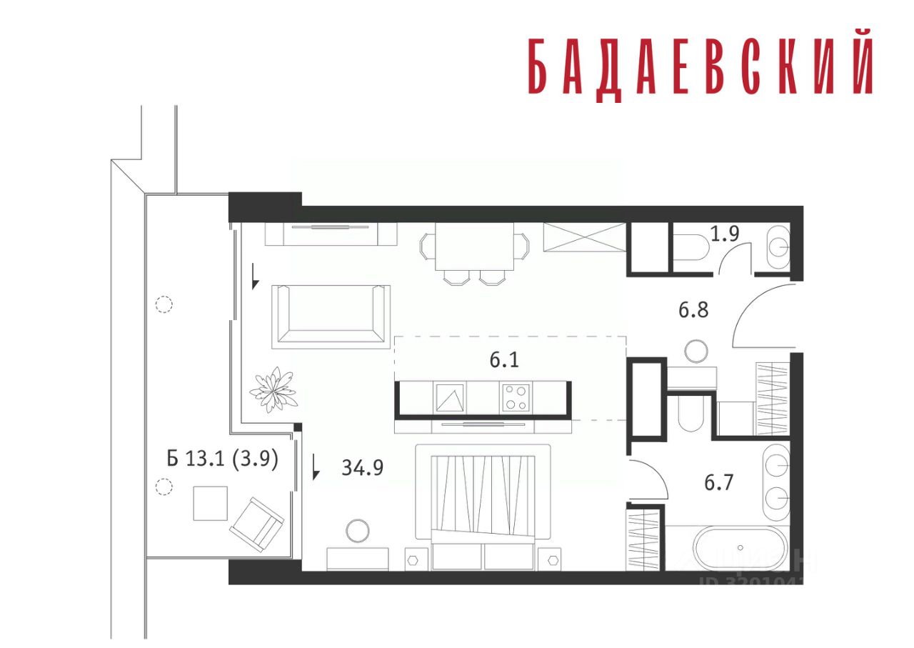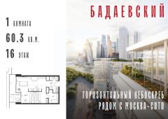 Продаётся 1-комнатная квартира общей площадью 60.30 м² на 16 этаже Жилого Комплекса Бадаевский.