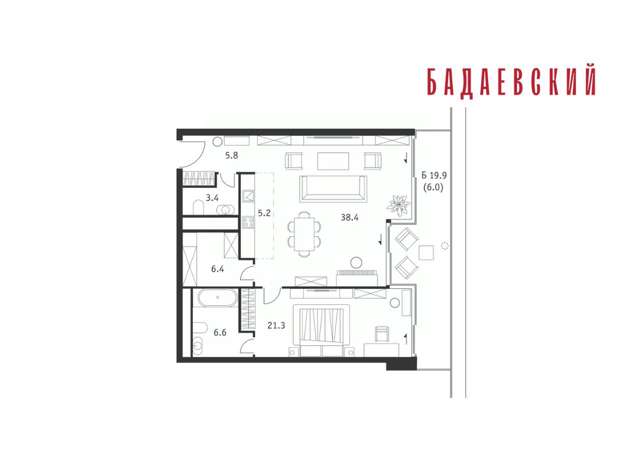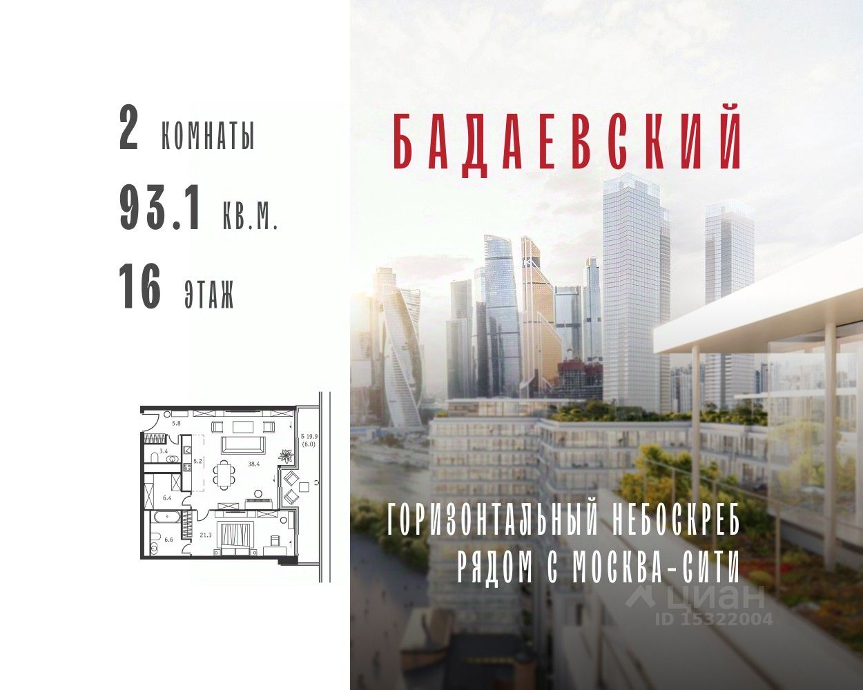 Продаётся 2-комнатная квартира общей площадью 93.1 м² на 16 этаже Жилого Комплекса Бадаевский.