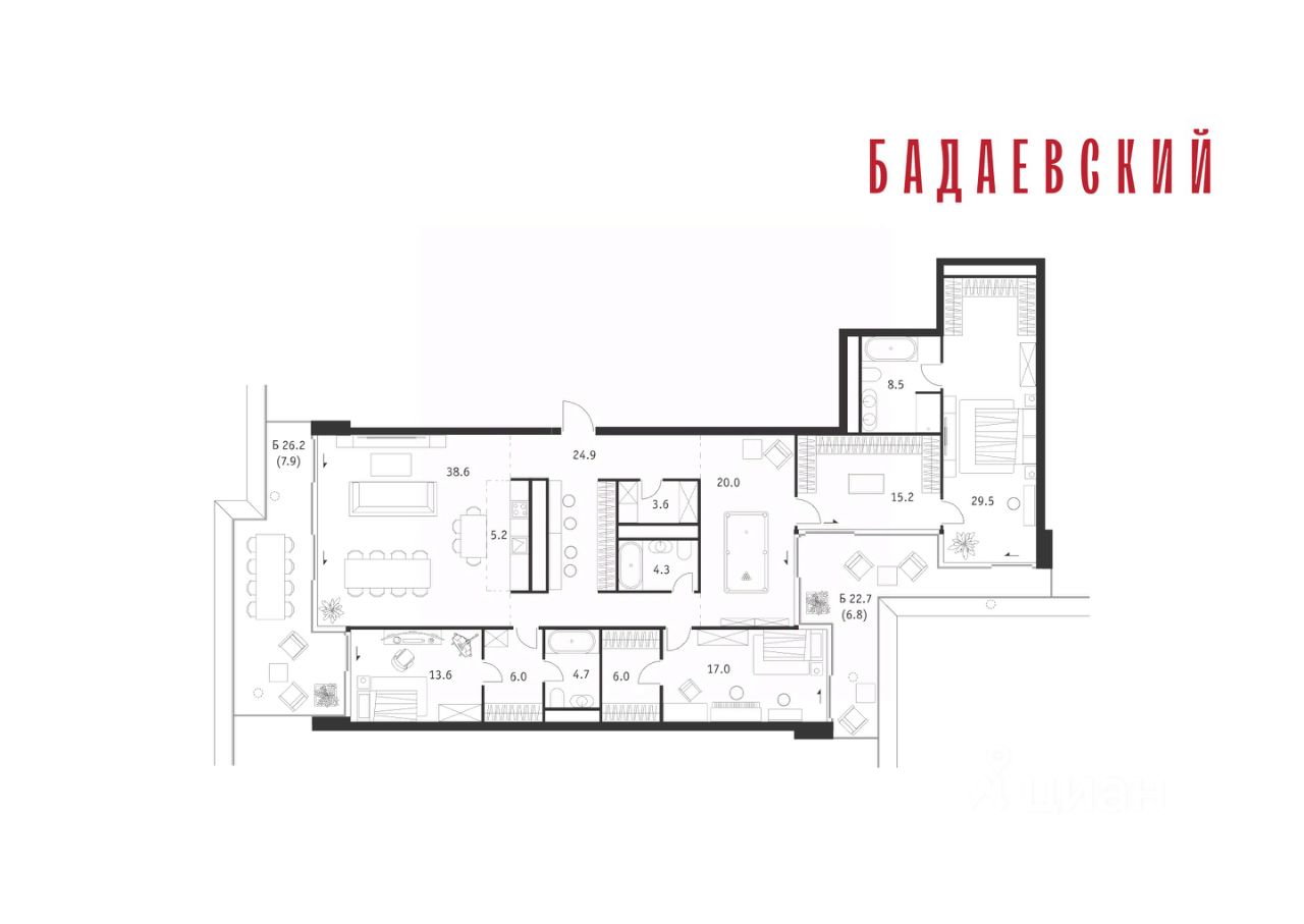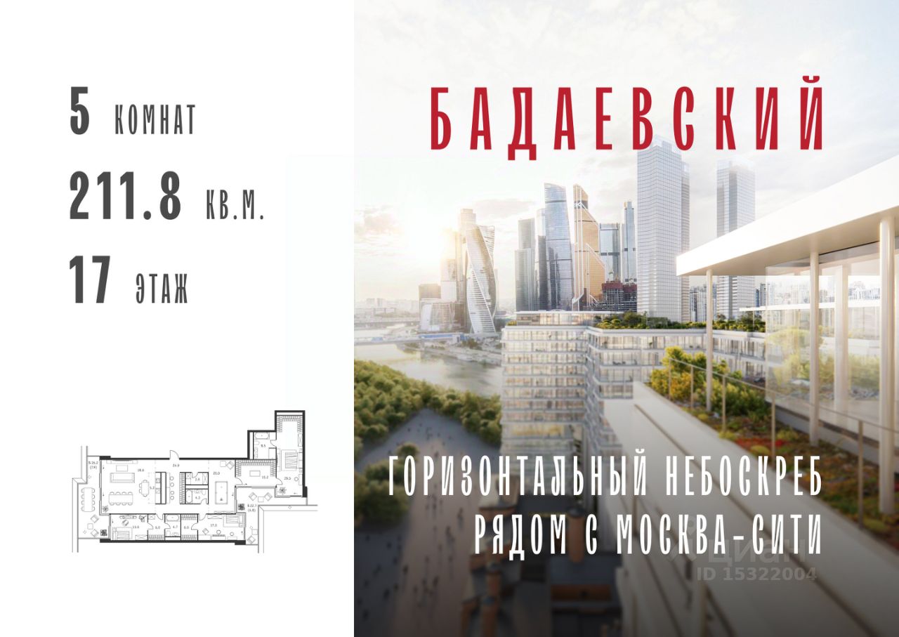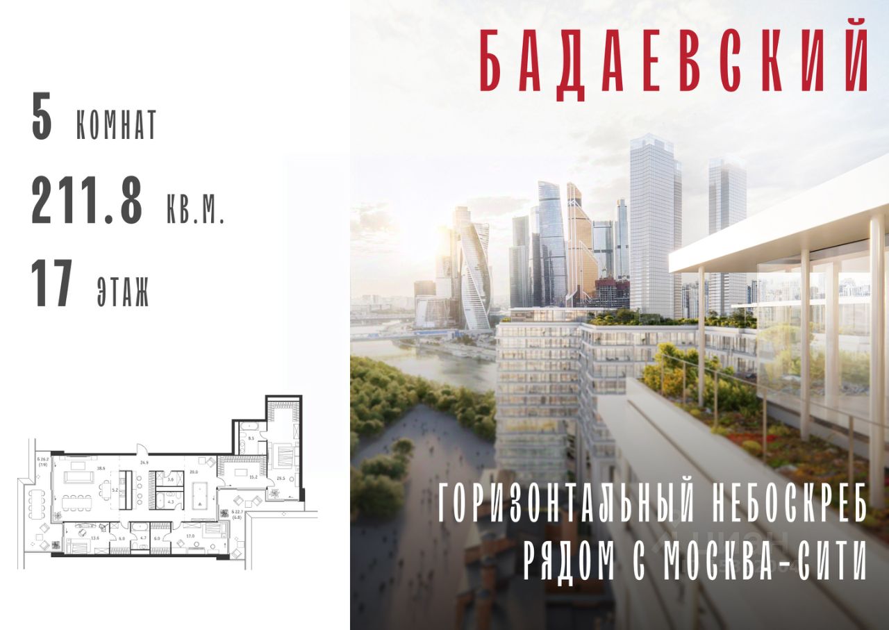 Продаётся 5-комнатная квартира общей площадью 211.80 м² на 17 этаже Жилого Комплекса Бадаевский.