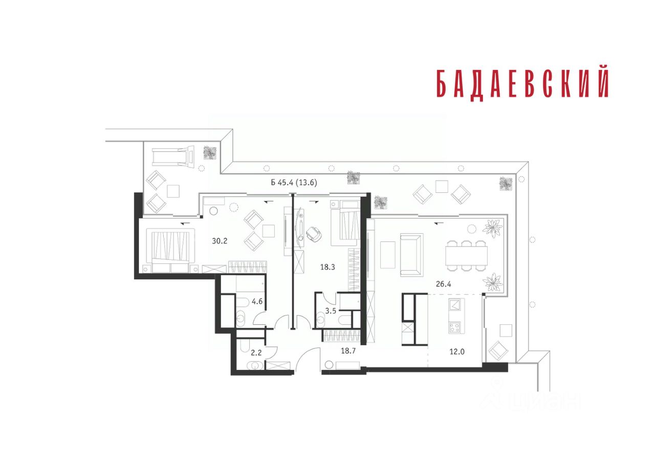 Продаётся 3-комнатная квартира общей площадью 129.50 м² на 14 этаже Жилого Комплекса Бадаевский.