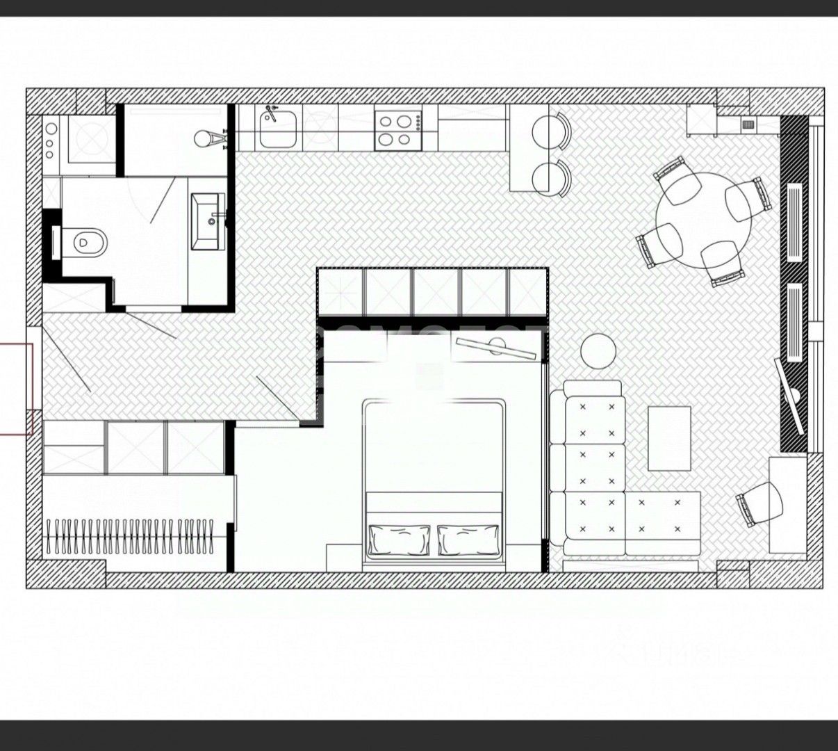 Планировка свободная — идеально для создания индивидуального интерьера в формате современной студии для бизнеса или квартиры для посуточной аренды.