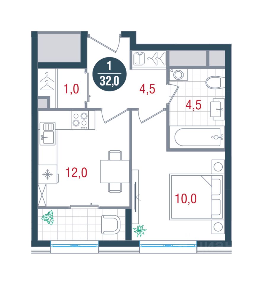 Продаётся 1-комнатная квартира в строящемся доме (Корпус 2), срок сдачи: I-кв. 2026, общей площадью 32 кв.м., на 23 этаже. Новый жилой комплекс "Кавказский бульвар 51/2" от Концерна Русич