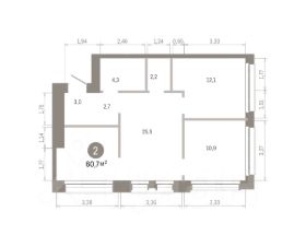 Квартира с кухней-гостиной и двумя спальнями в Доме "А". Особенности планировки: без отделки.