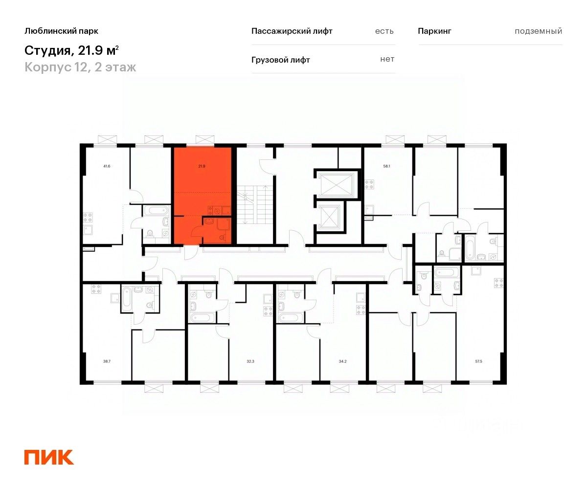 Продаётся квартира-студия площадью 21,9 кв.м на 2 этаже 16 этажного дома (Корпус 12, Секция 2) проекта ПИК Люблинский парк. Светлый просторный подъезд на уровне земли, функциональная планировка, большие окна, c отделкой.