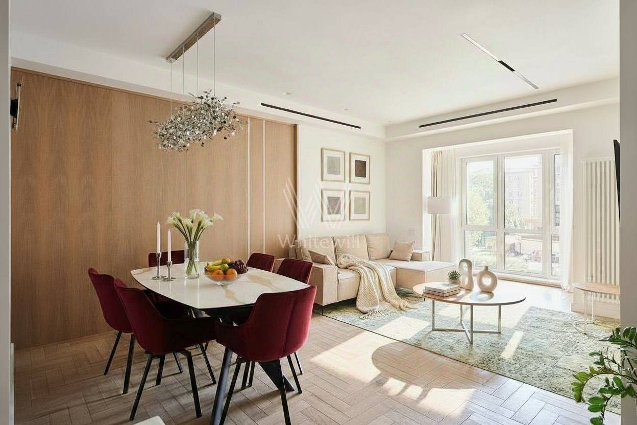 Квартира с четырьмя спальнями общей площадью 130 м² в клубном доме "Лужники Хаус" в Хамовниках. Выполнен премиальный дизайнерский ремонт в современном стиле. Квартира укомплектована мебелью и бытовой техникой. Окна с видами на город и во двор.
