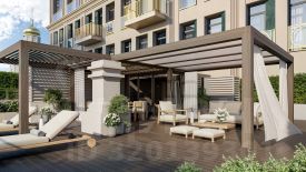 Фитнес-центр 200 м², крытый двор-сад с водопадом, общая гостиная, детская, игровые площадки, колясочные/велопомещения.