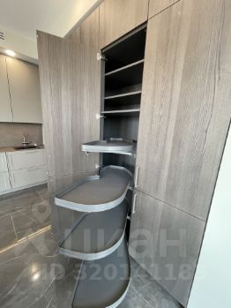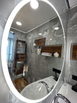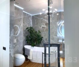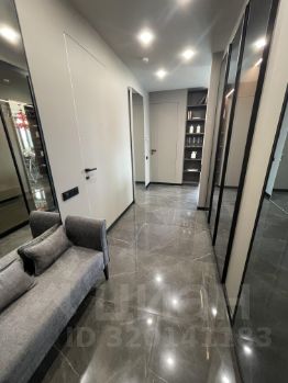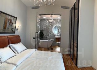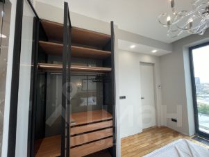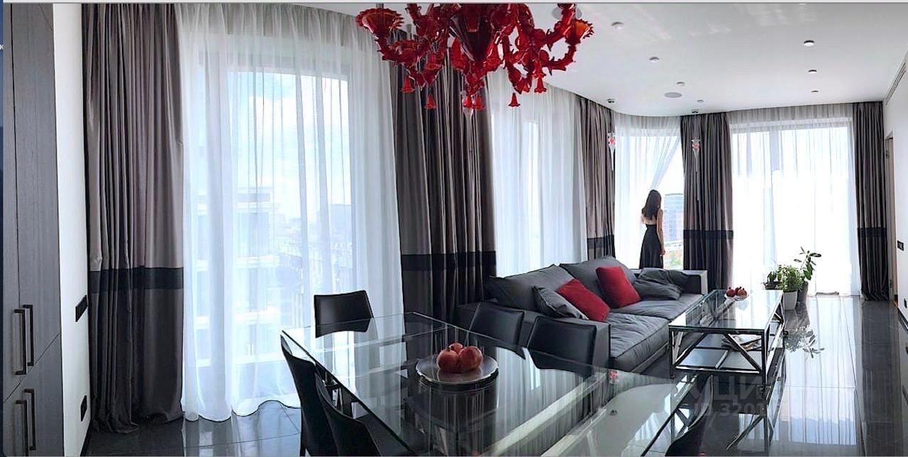 В квартире есть просторная кухня-гостиная, две изолированные спальни, два санузла, гардеробная, панорамные окна с видом на Сити и центр Москвы.