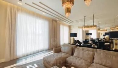 Планировка: гостиная, объединенная с зоной столовой, кухня, две спальни со своими санузлами и гардеробными, гостевой санузел, прихожая, лоджия с панорамным видом на Москву-реку, Пречистенскую набережную, Третьяковскую галерею и Парк Музеон.