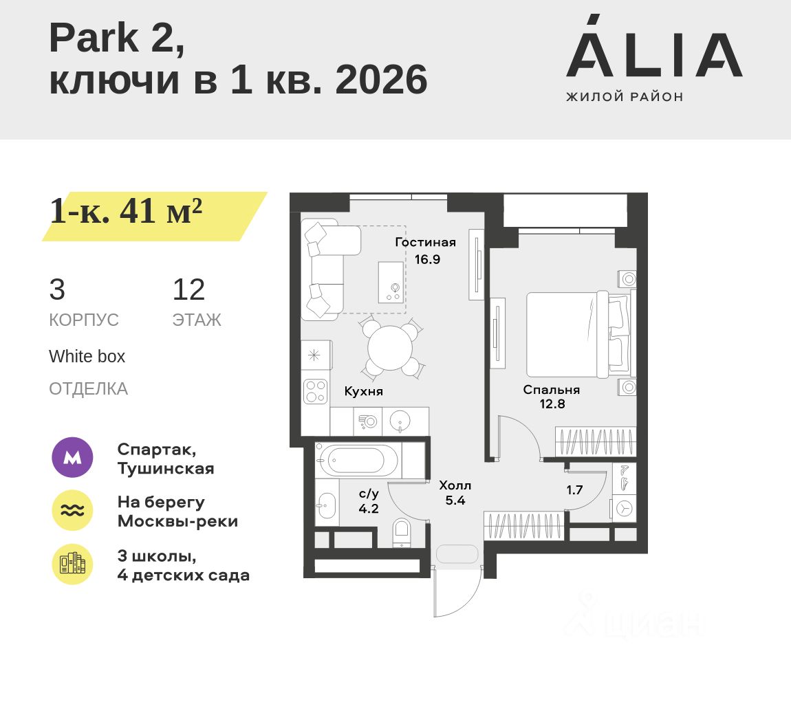 Жилой район ALIA — это дома бизнес-класса у слияния Москвы-реки и Сходни. ALIA находится в Покровском-Стрешневе, экологически чистом районе на престижном северо-западе столицы. Район возводится на бывшей территории Тушинского аэрополя, где никогда не было промышленного производства.