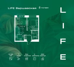 В районе Москворечье-Сабурово продается 2-комнатная квартира площадью 41.96 м². Она расположена на 7 этаже в 262 корпусе нового жилого квартала LIFE Варшавская.