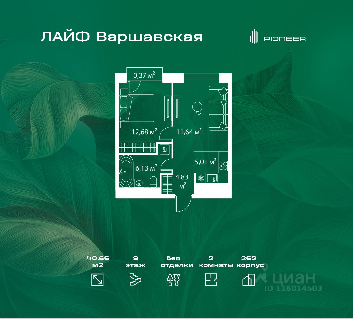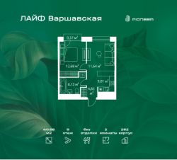 В районе Москворечье-Сабурово продается 2-комнатная квартира площадью 40.66 м². Она расположена на 9 этаже в 262 корпусе нового жилого квартала Лайф Варшавская.