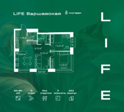 В районе Москворечье-Сабурово продается 3-комнатная квартира площадью 64.96 м². Она расположена на 9 этаже в 262 корпусе нового жилого квартала LIFE Варшавская.