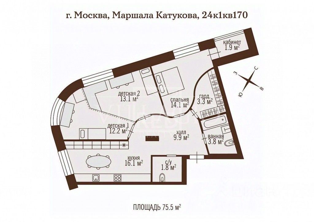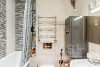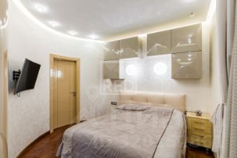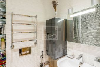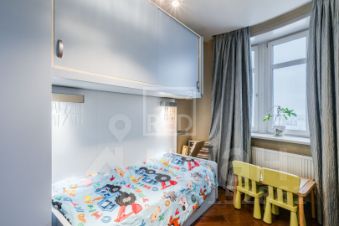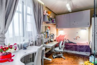 Высота потолков - 3 м. В квартире произведён высококачественный ремонт, выполнено зонирование - выделены 3 изолированных комнаты (спальня родителей 14,1м² и 2 детских - 12,2 м² и 12,1м²), просторная кухня 16,1м² и 2 - сан. узла, гардеробная. Между детскими установлена раздвижная перегородка, позволяющая объединять комнаты в единое игровое пространство.