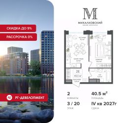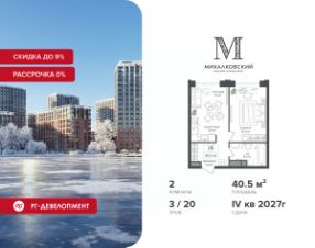 Продаётся 2-к квартира 40,5 кв.м. в ЖК "Михалковский" на 3-м этаже 20 этажного дома.