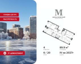 Продаётся 4-к квартира 89,9 кв.м. в ЖК "Михалковский" на 6-м этаже 20 этажного дома.