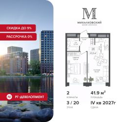Продаётся 2-к квартира 41,9 кв.м. в ЖК "Михалковский" на 3-м этаже 20 этажного дома.