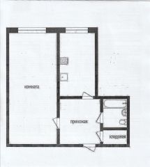 Планировка: кухня-столовая, ванная комната, совмещенный с/у, жилая комната.