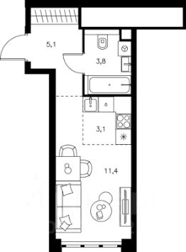 Представленая квартиры имеет выгодную геометрическую форму общей площадью 23,3 кв. м., что подарит жильцам камерную атмосферу и уют. Срок сдачи по ДДУ I кв. 2026 г.