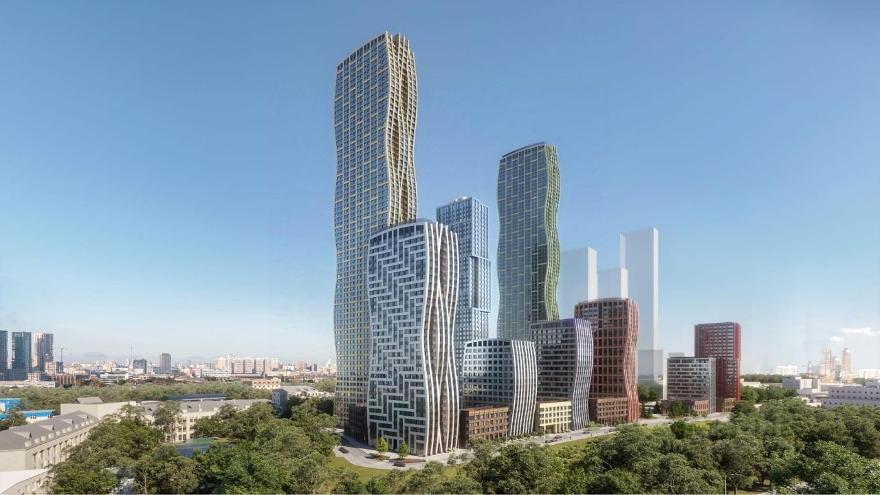 Авторская архитектура разработана бюро СПИЧ и вдохновлена динамикой воды, закрытая территория двора без машин с разными тематическими зонами вдохновлена Центральным парком в Нью Йорке.