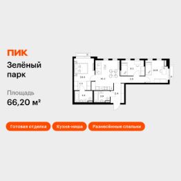 Продаётся 3-комн. квартира площадью 66,2 кв.м на 17 этаже 21 этажного дома (Корпус 5.2, Секция 1) проекта ПИК Зелёный парк. Светлый просторный подъезд на уровне земли, функциональная планировка, большие окна, c отделкой.