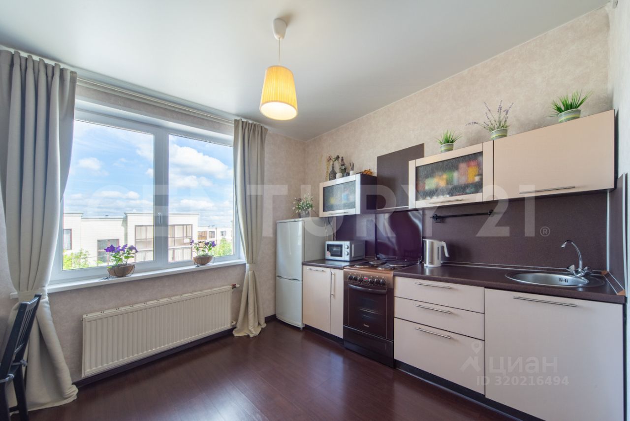 Кухонный гарнитур со встроенной техникой - остается новому владельцу в подарок, а также дополнительно корпусная мебель по согласованию. Современная функциональная компоновка.