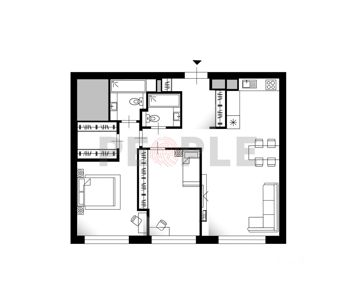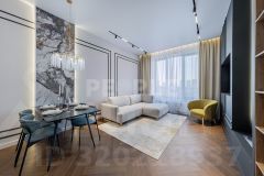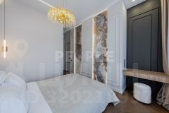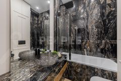 Квартира оснащена высококачественной встроенной техникой и мебелью, выполненной по индивидуальным проектам. Широкоформатная плитка и камень создают атмосферу элегантности и уюта.