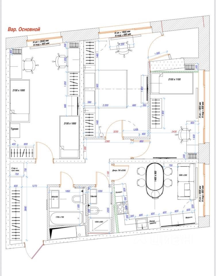 По планировке предусмотрено: хозяйская спальня, 2 детские комнаты, кухня-гостиная , 2 санузла.
