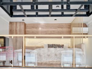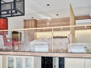 Просторная двухуровневая студия зонирование на приватную спальную зону и гостевую область