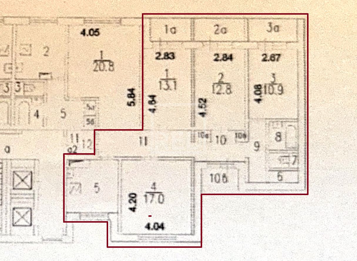 4 изолированные комнаты, просторная кухня, раздельный санузел, кладовая, 4 лоджии.