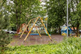 Двор благоустроенный - детский сад, школы, зелёные насаждения, детская площадка, места для наземной парковки автомашин.