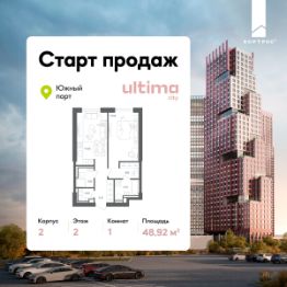 Старт продаж! Продаётся 1-комнатная квартира от застройщика ГК "КОРТРОС" в жилом комплексе бизнес-класса ULTIMAcity. Квартира расположена на 2 этаже 52 этажного корпуса 2. Общая площадь 48,92 м². Без отделки.