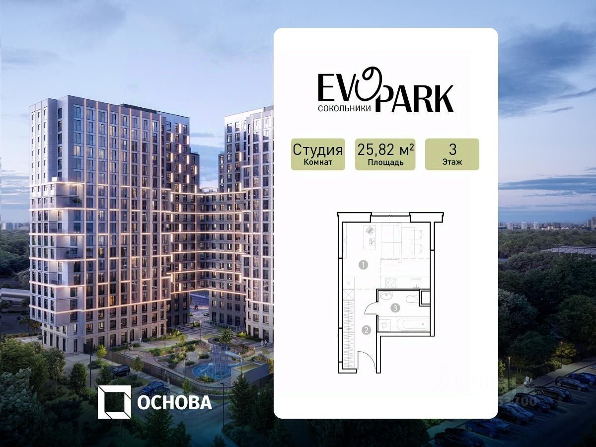 Продается студия площадью 25.82 кв.м. на 3-м этаже 20 этажного дома в EVOPARK Сокольники от ГК ОСНОВА.
