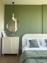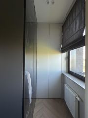 Спальня с полноценной гардеробной закрытого хранения. В спальне 4 окна, что делает ее заполненной светом, установлены шторы индивидуального пошива,при необходимости блокирующие свет.