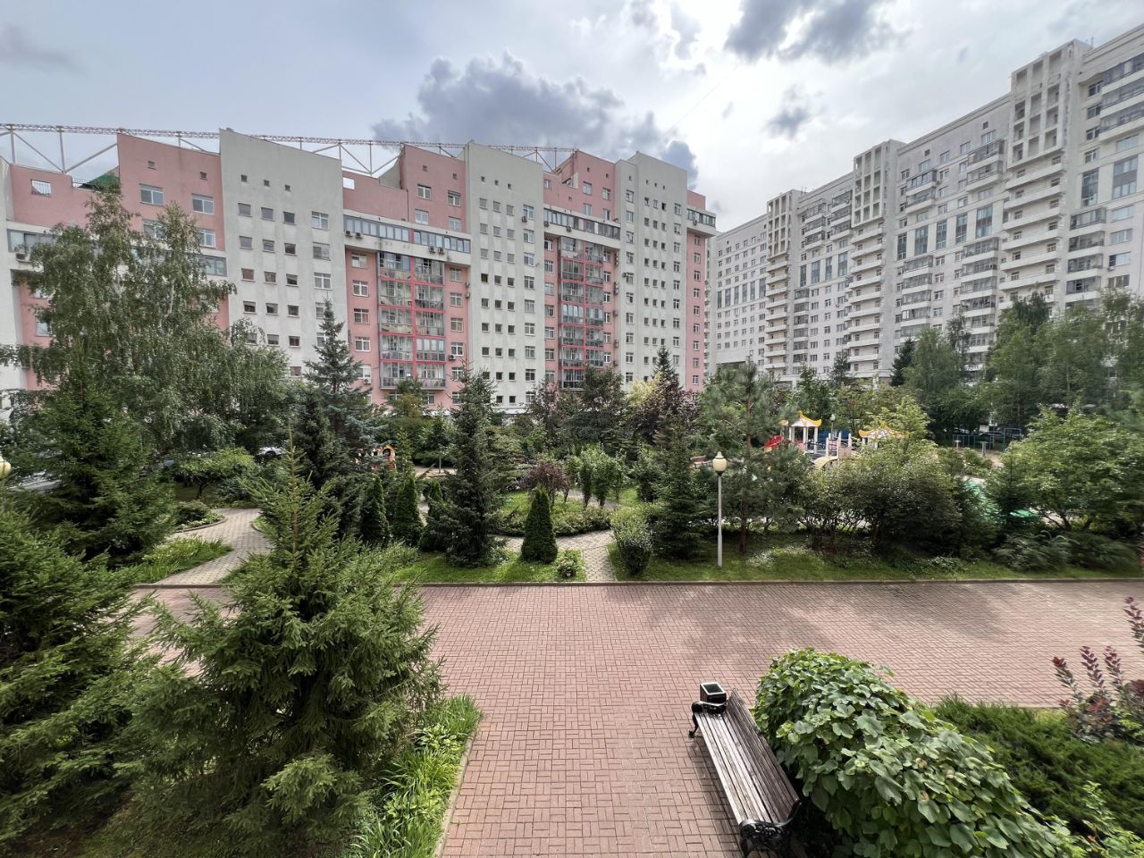 Территория огорожена, охраняемый двор с детской площадкой.