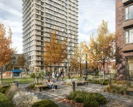 У подъездов будет два выхода: на улицу и во двор-парк. В наших дворах мы установим столы и лавочки со встроенными зарядными устройствами. Не нужно будет возвращаться домой, чтобы зарядить смартфон или ноутбук: можно весь день работать на свежем воздухе.