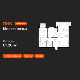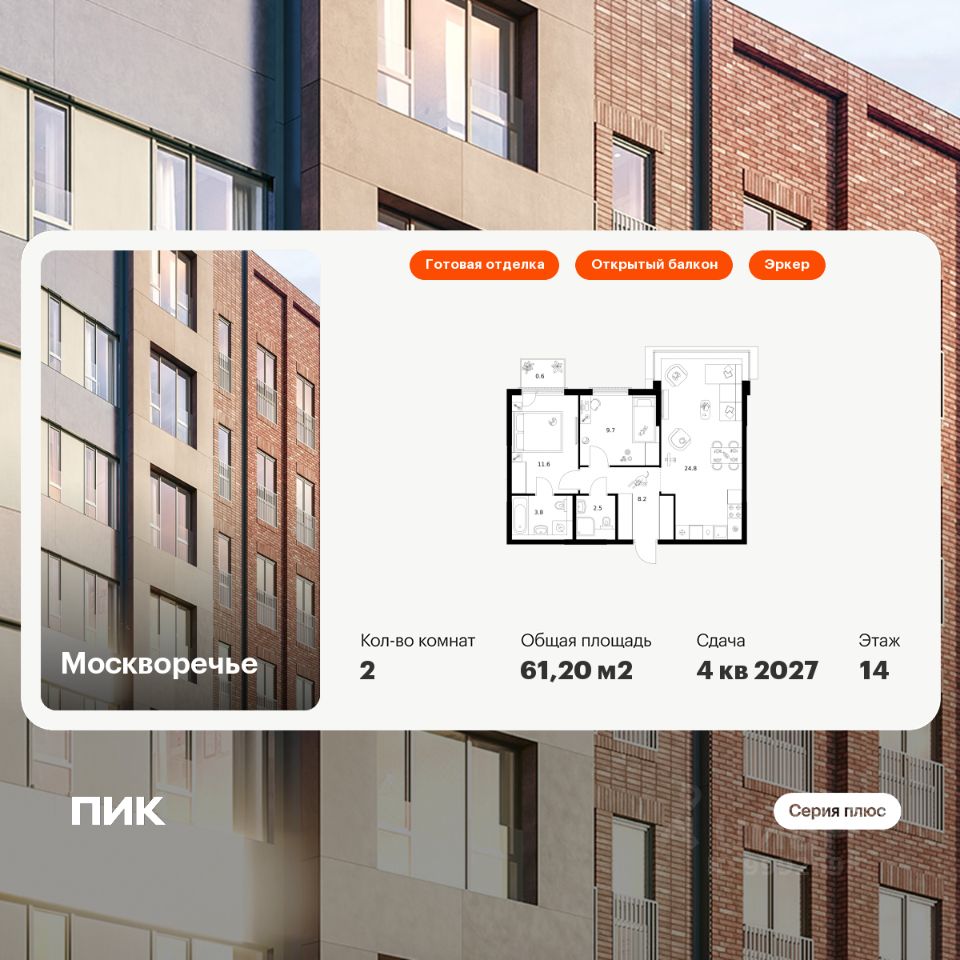 Продаётся 2-комн. квартира площадью 61,2 кв.м на 14 этаже 17 этажного дома (Корпус 1.2, Секция 2) проекта ПИК Москворечье. Светлый просторный подъезд на уровне земли, функциональная планировка, большие окна, c отделкой.