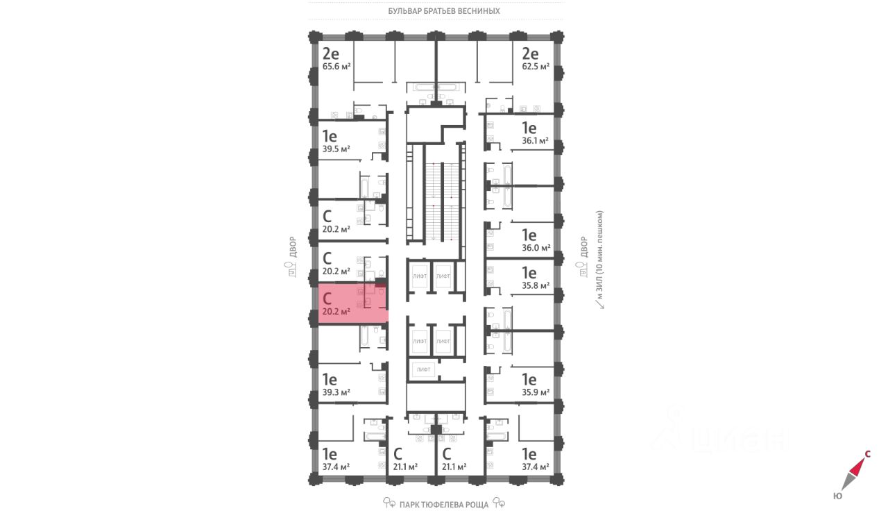 Продаётся квартира-студия в доме ЗИЛАРТ СПАРК общей площадью 20.2 кв. метров на 30 этаже.
