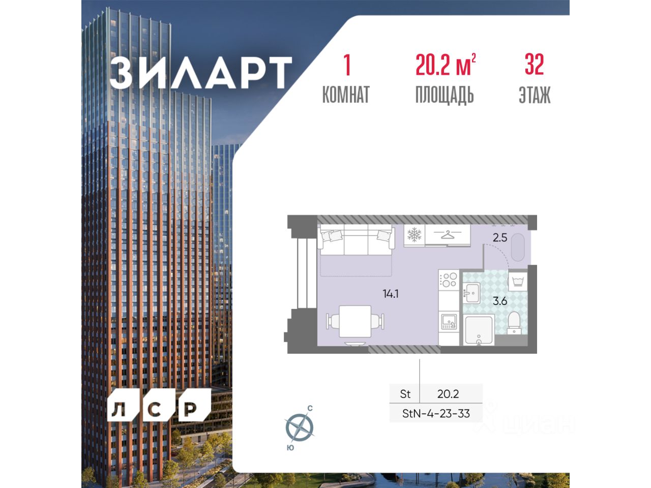 Продаётся квартира-студия в доме ЗИЛАРТ СПАРК общей площадью 20.2 кв. метров на 32 этаже.