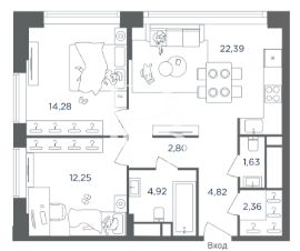 Просторная, трехкомнатная квартира расположена в третьей очереди строительства жилого комплекса "Headliner".