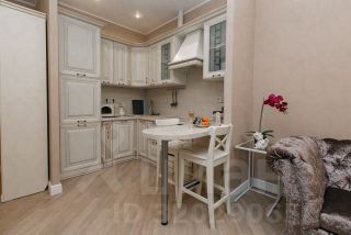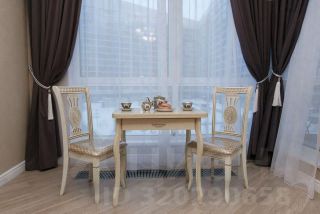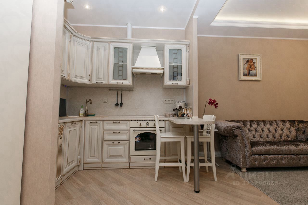 Полноценная кухня, все для хозяйки (много полок и шкафчиков). Встроенный тихий холодильник. Мощная вытяжка. Посудомоечная машинка и отличная духовка.Раскладывающийся обеденный стол, и барная стойка.