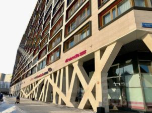 В стилобатной части здания работают рестораны, магазины, салоны красоты, бытовые услуги.