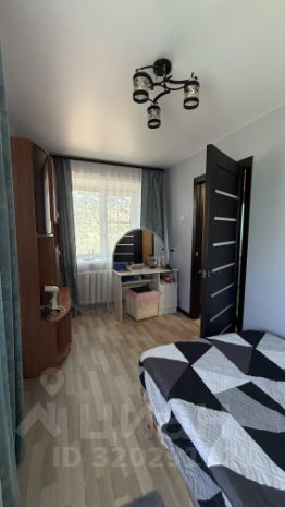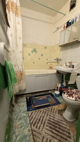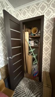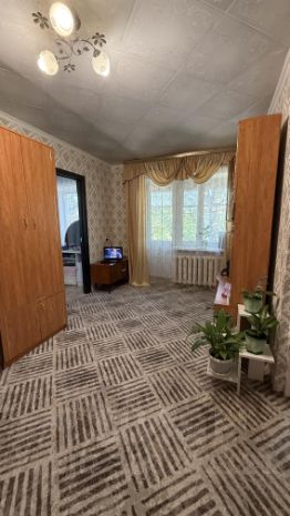 Прихожая, совместный санузел, кухня 6 кв.м, 2 смежные жилые комнаты. Кладовая со стороны зала. Балкон. Везде установлены пластиковые стеклопакеты. Выровнены стены, установлены новые межкомнатные двери, в спальне поменяли пол, недавно поклеили обои и положили напольное покрытие.