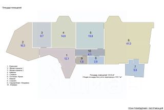 Кухня-гостиная с эркером (41 кв.м.), три изолированных спальни (16,3-9,7-14,6 кв.м.) и стеклянный кабинет (15,6 кв.м.). Просторная прихожая, два совмещенных санузла, кладовка.
