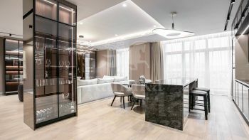 Квартира оборудована современной техникой известных брендов: Стиральная и сушильная машинки, варочная панель и духовой шкаф, микроволновка Miele. Холодильник и посудомоечная машина Smeg. Винный шкаф Asko: Идеальное место для хранения ваших винных коллекций.