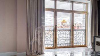Продается уютная квартира на 4-м этаже площадью 144 квадратных метра, расположенная в одном из лучших районов города. Из окон открывается прекрасный вид на Храм Христа Спасителя и внутренний дворик, что создает атмосферу уюта и спокойствия.