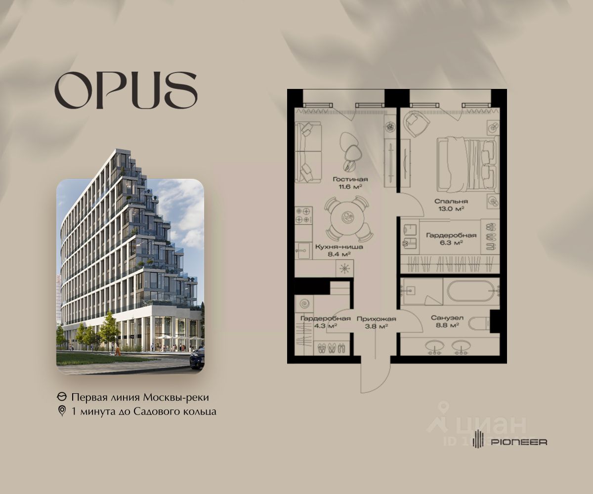 Прямая продажа от застройщика! Продаётся 1-к квартира общей площадью 56.2 кв. м. на 3-м этаже 11 этажного дома. Клубный дом OPUS - современный шедевр архитектуры от компании PIONEER, трансформирующий пространство, меняющий привычный ход вещей. Близость Москвы-реки определила его исключительную форму, вдохновлённую стихией воды. Уникальный и единственный в своём роде OPUS создаёт ощущение преображения, деликатно взаимодействуя с городской тканью. Продуманная территория с парковой атмосферой позволяет находиться в уединении в самом центре города, именно эти исключительные характеристики делают OPUS особенным. Площадь однокомнатной квартиры здесь превышает 50 квадратных метров, а отдельные трёхкомнатные решения восхищают 266-метровым простором и видами на реку. Уникальные квартиры с 8 балконами на разные стороны света, не менее эффектные решения - кабинеты и гардеробные с отдельными балконами, а ванные комнаты с панорамными окнами и собственным балконом. OPUS располагается в историческом месте с видом на Крутицкое подворье и Симоновский вал. Совсем рядом легендарное Замоскворечье - район, сохранивший камерную атмосферу старой Москвы. Локация уникальна также тем, что новые современные объекты будут соседствовать здесь с культовыми объектами культурного и исторического наследия города. За 22 года на рынке недвижимости компания PIONEER реализовала более 30 проектов. Сегодня PIONEER - девелопер премиальной недвижимости с 4 проектами класса премиум и deluxe. Продажа от застройщика. Покупка доступна в рассрочку и ипотеку. Звоните, и мы с удовольствием расскажем все подробности о проекте и условиях покупки.