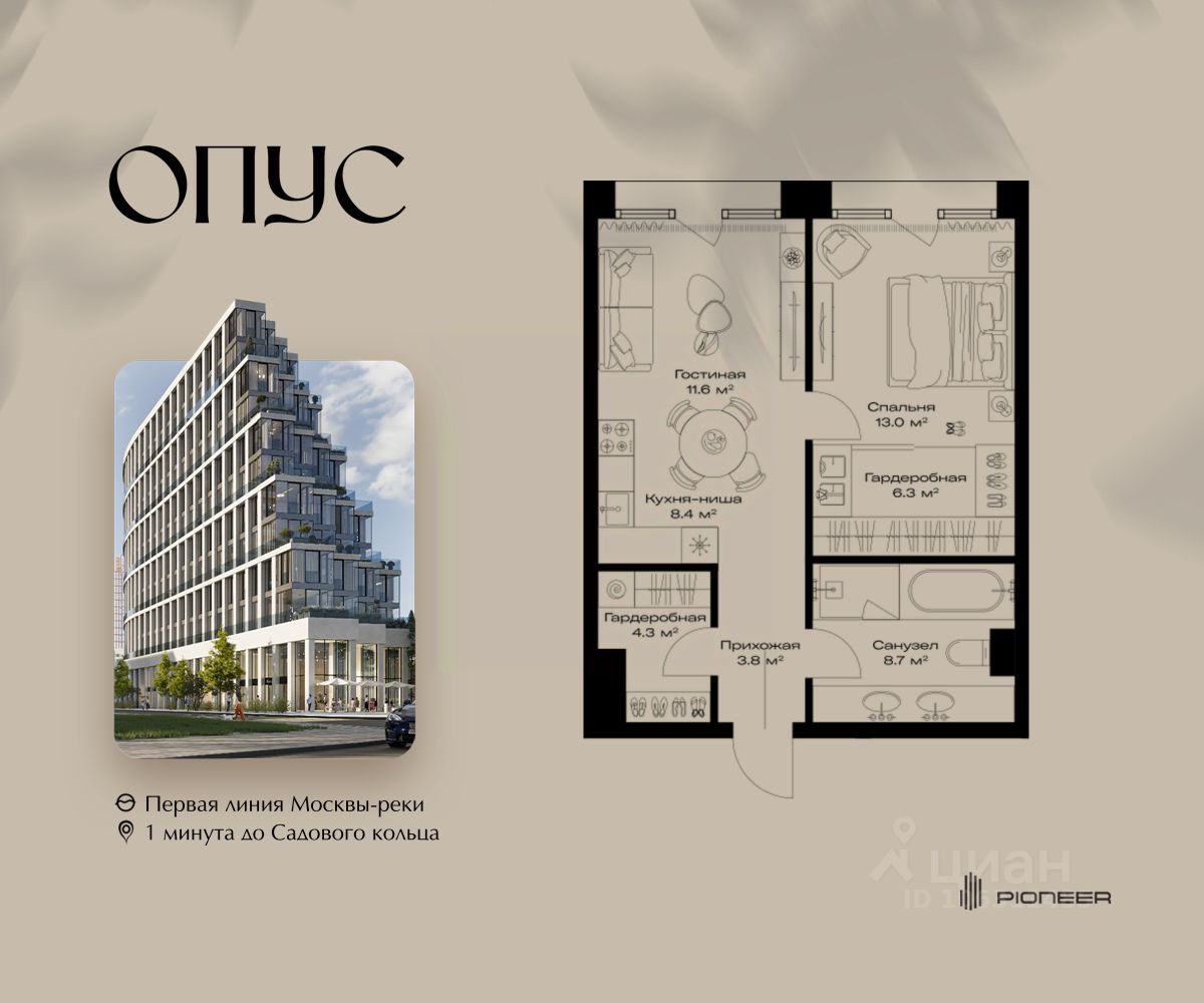 Прямая продажа от застройщика! Продаётся 1-к квартира общей площадью 56.1 кв. м. на 3-м этаже 11 этажного дома. Клубный дом ОПУС - современный шедевр архитектуры от компании PIONEER, трансформирующий пространство, меняющий привычный ход вещей. Близость Москвы-реки определила его исключительную форму, вдохновлённую стихией воды. Уникальный и единственный в своём роде ОПУС создаёт ощущение преображения, деликатно взаимодействуя с городской тканью. Продуманная территория с парковой атмосферой позволяет находиться в уединении в самом центре города, именно эти исключительные характеристики делают ОПУС особенным. Площадь однокомнатной квартиры здесь превышает 50 квадратных метров, а отдельные трёхкомнатные решения восхищают 266-метровым простором и видами на реку. Уникальные квартиры с 8 балконами на разные стороны света, не менее эффектные решения - кабинеты и гардеробные с отдельными балконами, а ванные комнаты с панорамными окнами и собственным балконом. ОПУС располагается в историческом месте с видом на Крутицкое подворье и Симоновский вал. Совсем рядом легендарное Замоскворечье - район, сохранивший камерную атмосферу старой Москвы. Локация уникальна также тем, что новые современные объекты будут соседствовать здесь с культовыми объектами культурного и исторического наследия города. За 22 года на рынке недвижимости компания PIONEER реализовала более 30 проектов. Сегодня PIONEER - девелопер премиальной недвижимости с 4 проектами класса премиум и deluxe. Продажа от застройщика. Покупка доступна в рассрочку и ипотеку. Звоните, и мы с удовольствием расскажем все подробности о проекте и условиях покупки.