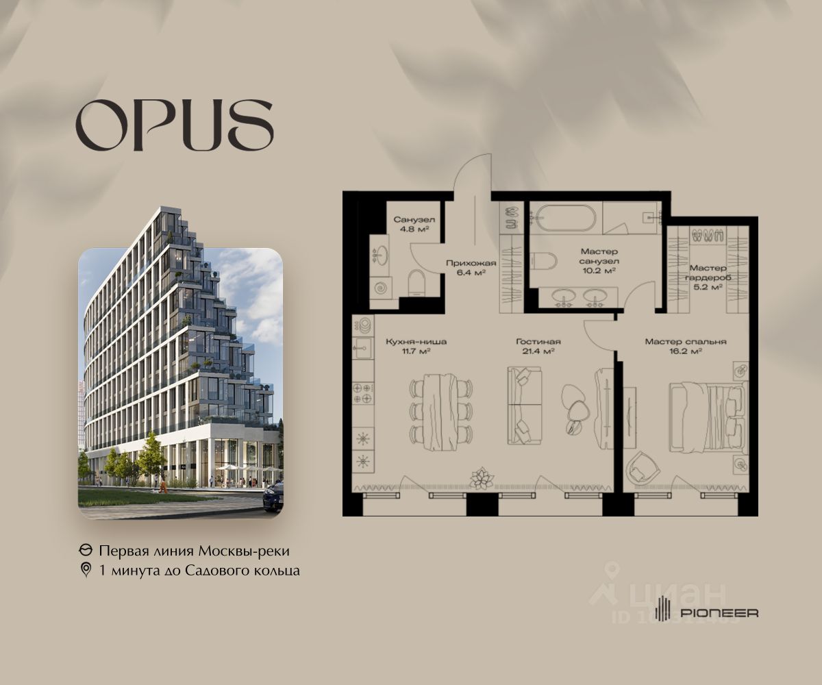 Прямая продажа от застройщика! Продаётся 1-к квартира общей площадью 75.9 кв. м. на 7-м этаже 11 этажного дома. Клубный дом OPUS - современный шедевр архитектуры от компании PIONEER, трансформирующий пространство, меняющий привычный ход вещей. Близость Москвы-реки определила его исключительную форму, вдохновлённую стихией воды. Уникальный и единственный в своём роде OPUS создаёт ощущение преображения, деликатно взаимодействуя с городской тканью. Продуманная территория с парковой атмосферой позволяет находиться в уединении в самом центре города, именно эти исключительные характеристики делают OPUS особенным. Площадь однокомнатной квартиры здесь превышает 50 квадратных метров, а отдельные трёхкомнатные решения восхищают 266-метровым простором и видами на реку. Уникальные квартиры с 8 балконами на разные стороны света, не менее эффектные решения - кабинеты и гардеробные с отдельными балконами, а ванные комнаты с панорамными окнами и собственным балконом. OPUS располагается в историческом месте с видом на Крутицкое подворье и Симоновский вал. Совсем рядом легендарное Замоскворечье - район, сохранивший камерную атмосферу старой Москвы. Локация уникальна также тем, что новые современные объекты будут соседствовать здесь с культовыми объектами культурного и исторического наследия города. За 22 года на рынке недвижимости компания PIONEER реализовала более 30 проектов. Сегодня PIONEER - девелопер премиальной недвижимости с 4 проектами класса премиум и deluxe. Продажа от застройщика. Покупка доступна в рассрочку и ипотеку. Звоните, и мы с удовольствием расскажем все подробности о проекте и условиях покупки.