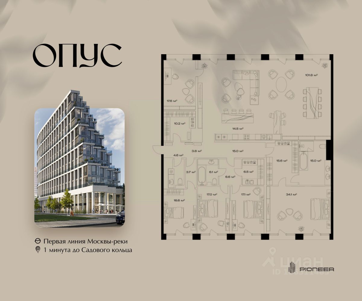 Прямая продажа от застройщика! Продаётся 4-к квартира общей площадью 305.9 кв. м. на 11-м этаже 11 этажного дома. Клубный дом OPUS - современный шедевр архитектуры от компании PIONEER, трансформирующий пространство, меняющий привычный ход вещей. Близость Москвы-реки определила его исключительную форму, вдохновлённую стихией воды. Уникальный и единственный в своём роде OPUS создаёт ощущение преображения, деликатно взаимодействуя с городской тканью. Продуманная территория с парковой атмосферой позволяет находиться в уединении в самом центре города, именно эти исключительные характеристики делают OPUS особенным. Площадь однокомнатной квартиры здесь превышает 50 квадратных метров, а отдельные трёхкомнатные решения восхищают 266-метровым простором и видами на реку. Уникальные квартиры с 8 балконами на разные стороны света, не менее эффектные решения - кабинеты и гардеробные с отдельными балконами, а ванные комнаты с панорамными окнами и собственным балконом. OPUS располагается в историческом месте с видом на Крутицкое подворье и Симоновский вал. Совсем рядом легендарное Замоскворечье - район, сохранивший камерную атмосферу старой Москвы. Локация уникальна также тем, что новые современные объекты будут соседствовать здесь с культовыми объектами культурного и исторического наследия города. За 22 года на рынке недвижимости компания PIONEER реализовала более 30 проектов. Сегодня PIONEER - девелопер премиальной недвижимости с 4 проектами класса премиум и deluxe. Продажа от застройщика. Покупка доступна в рассрочку и ипотеку. Звоните, и мы с удовольствием расскажем все подробности о проекте и условиях покупки.