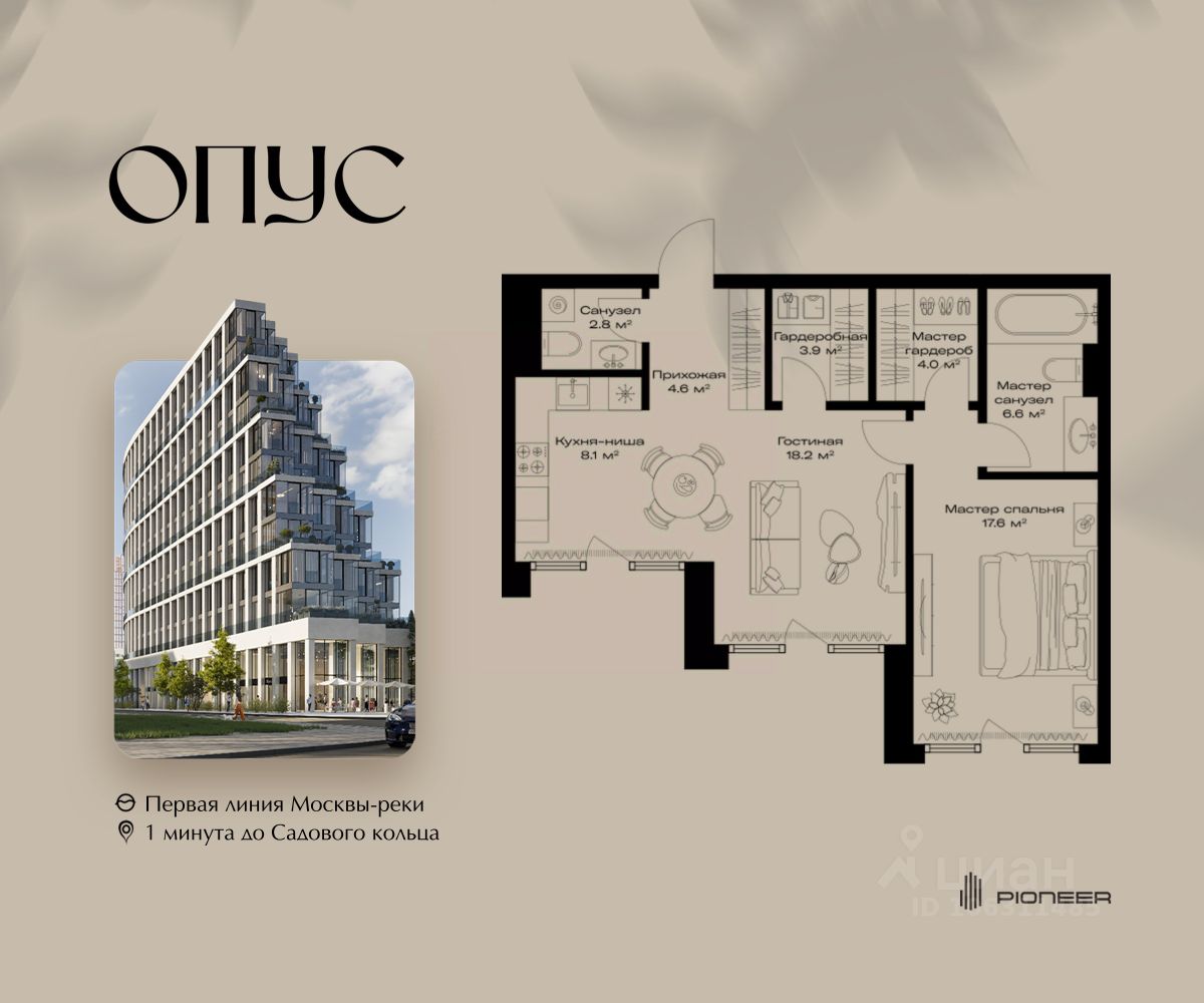 Прямая продажа от застройщика! Продаётся 1-к квартира общей площадью 65.8 кв. м. на 8-м этаже 11 этажного дома. Клубный дом OPUS - современный шедевр архитектуры от компании PIONEER, трансформирующий пространство, меняющий привычный ход вещей. Близость Москвы-реки определила его исключительную форму, вдохновлённую стихией воды. Уникальный и единственный в своём роде OPUS создаёт ощущение преображения, деликатно взаимодействуя с городской тканью. Продуманная территория с парковой атмосферой позволяет находиться в уединении в самом центре города, именно эти исключительные характеристики делают OPUS особенным. Площадь однокомнатной квартиры здесь превышает 50 квадратных метров, а отдельные трёхкомнатные решения восхищают 266-метровым простором и видами на реку. Уникальные квартиры с 8 балконами на разные стороны света, не менее эффектные решения - кабинеты и гардеробные с отдельными балконами, а ванные комнаты с панорамными окнами и собственным балконом. OPUS располагается в историческом месте с видом на Крутицкое подворье и Симоновский вал. Совсем рядом легендарное Замоскворечье - район, сохранивший камерную атмосферу старой Москвы. Локация уникальна также тем, что новые современные объекты будут соседствовать здесь с культовыми объектами культурного и исторического наследия города. За 22 года на рынке недвижимости компания PIONEER реализовала более 30 проектов. Сегодня PIONEER - девелопер премиальной недвижимости с 4 проектами класса премиум и deluxe. Продажа от застройщика. Покупка доступна в рассрочку и ипотеку. Звоните, и мы с удовольствием расскажем все подробности о проекте и условиях покупки.